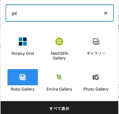 具体的にはブロックエディター(Gutenberg)ならば、ギャラリープラグインをインストールすると、ブロックにアイコンが表示されます.(検索ボックスに「gallary」の「ga」くらい入力すると インストールされているギャラリープラグインが簡単に見つけられます)