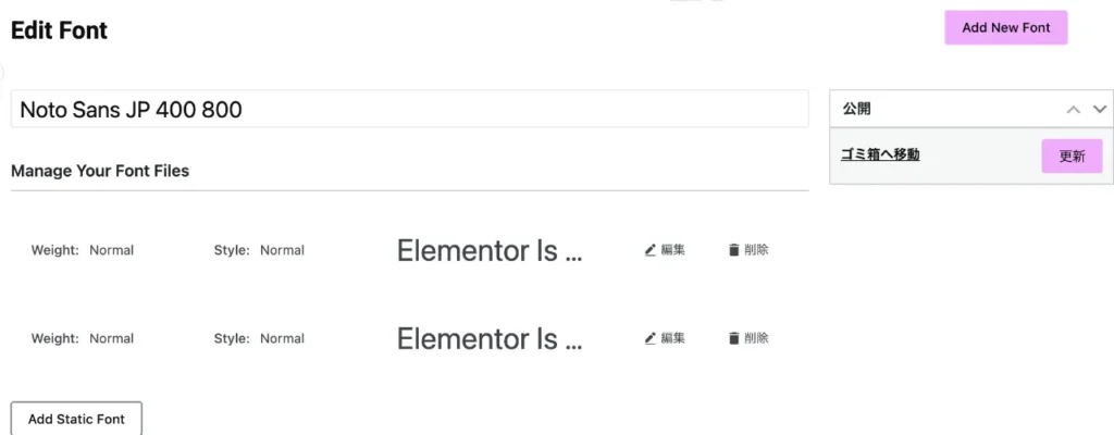 次にこのフォントをElementor に登録して使えるようにしましょう。