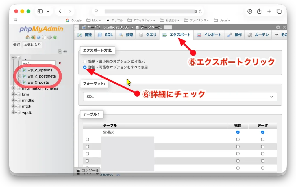 旧サイトからテーブルをエクスポート